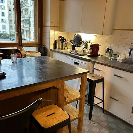 Die 57 m^2 große Ferienwohnung Grenade liegt im Bezirk Eaux-Vives, in circa 25 Gehminuten Entfernung vom Strand Bains des Paquis. Das 1-Zimmer-Apartment bietet Ausblicke auf die Stadt.
